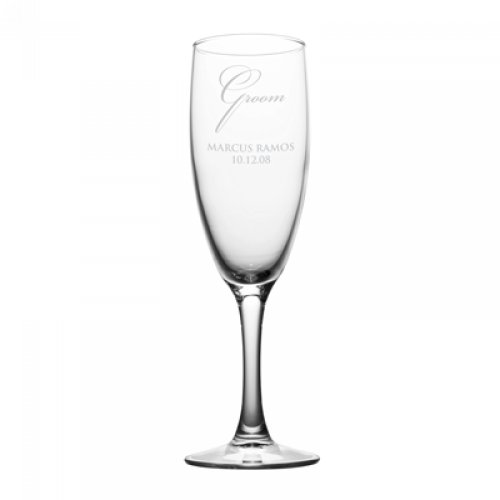 Make your celebration even more memorable with personalized champagne flutes. Holds 6 oz. Features "Groom" in decorative text. Read more...