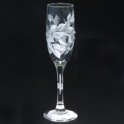 Toast to your new love, new life, new year with our hand painted champagne flutes. Each glass is hand painted with a white and silver leaf design and for extra accent we have added aurora borealis swarovski crystals to the base of the leaves. These 6 oz champagne flutes are gorgeous, if I do say so myself. Such a unique gift and a beautiful way to celebrate. They make wonderful wedding party gifts, wedding gifts, gifts for out of town guests and parents. Hand wash 6oz flute glasses Read more...
