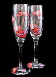 Red Hat Dazzle Design - Hand Painted - Matching Set of Toasting Flutes - 6 oz. Review