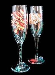 Angel Fish Design - Hand Painted - Matching Set of Toasting Flutes - 6 oz. Review