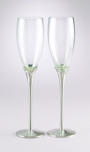 PAIR OF GLASS FLUTES WITH CRYSTAL AND SATIN STEM - GLASS FLUTES W/ CRYSTALS & SATIN STEMS (PR), Review