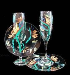 Bird of Paradise Design - Hand Painted - Matching Set of Toasting Flutes - 6 oz. & 7 inch Cake Plates Review