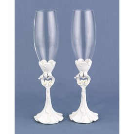 29203A resin couple united as one holds a bouquet of calla lilies, creating elegant stems for the glass bowls of these toasting flutes. 10 tall. Set of two." Read more...