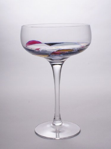 Set Of Four (4) - Romanian Crystal Barware - Cobalt Blue Swirl/Stained Glass Pattern - Milano Design - 7 Oz Champagne Saucer Crystal Glasses Review