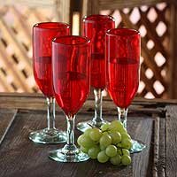Free Shipping Blown glass champagne flutes, 'Ruby' (set of 4) @ Amazon.com
