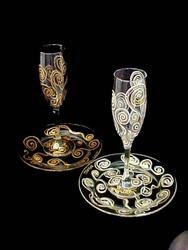 Hand Painted Wedding Champagne Toasting Flutes and Matching Cake Plates Sets - One set VICTORIAN BRIDE Design & One set RENAISSANCE GROOM Design. - Every detail of your Wedding should be filled with your own personal touches. Start with a toast from these glorious hand painted champagne flutes and end the celebration with the cake served beautifully on this pair of matching elegant plates. Read more...