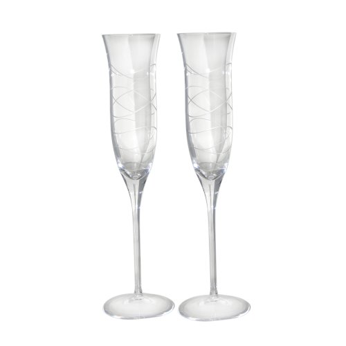 The Motus collection of crystal stemware and barware is designed by one of Nambé's most prolific and award-winning designers, Karim Rashid. Sure to impress a gift recipient or delight a fellow celebrant, each of the two Champagne flutes in this set rises to a spectacular height of 11 inches on a very thin stem. The narrow yet curvaceous bowl is adorned with hand-cut ribbons that swirl in a festive manner, as if to say, don't take life too seriously. Crafted of full-lead crystal by skilled European artisans, the delicate flutes beautifully refract light as the bubbles rise, resulting in a full-sensory experience. Motus crystal comes gift-boxed and is best washed by hand.